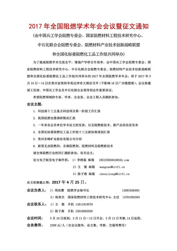 2017年全国阻燃学术年会会议暨征文通知
